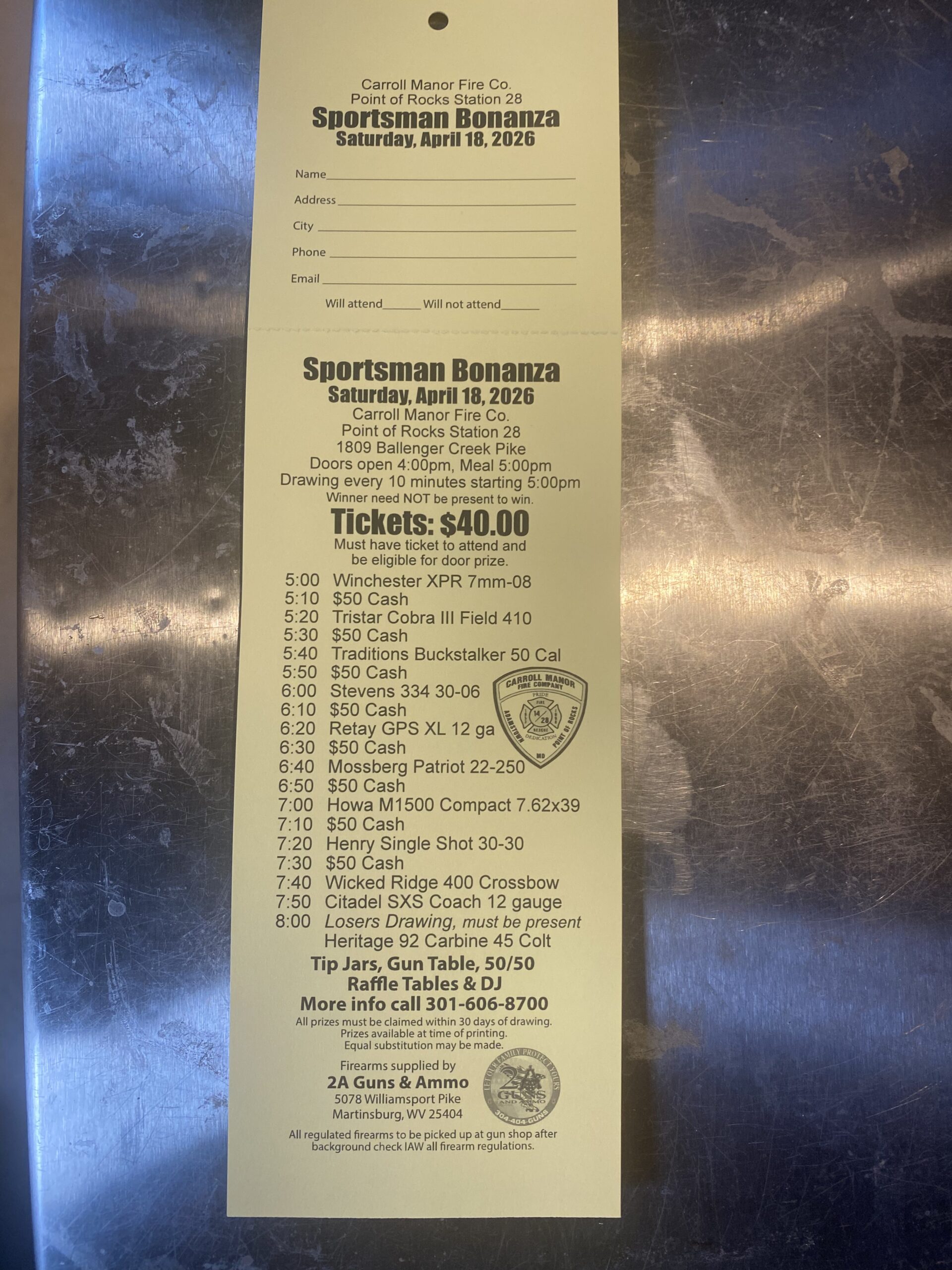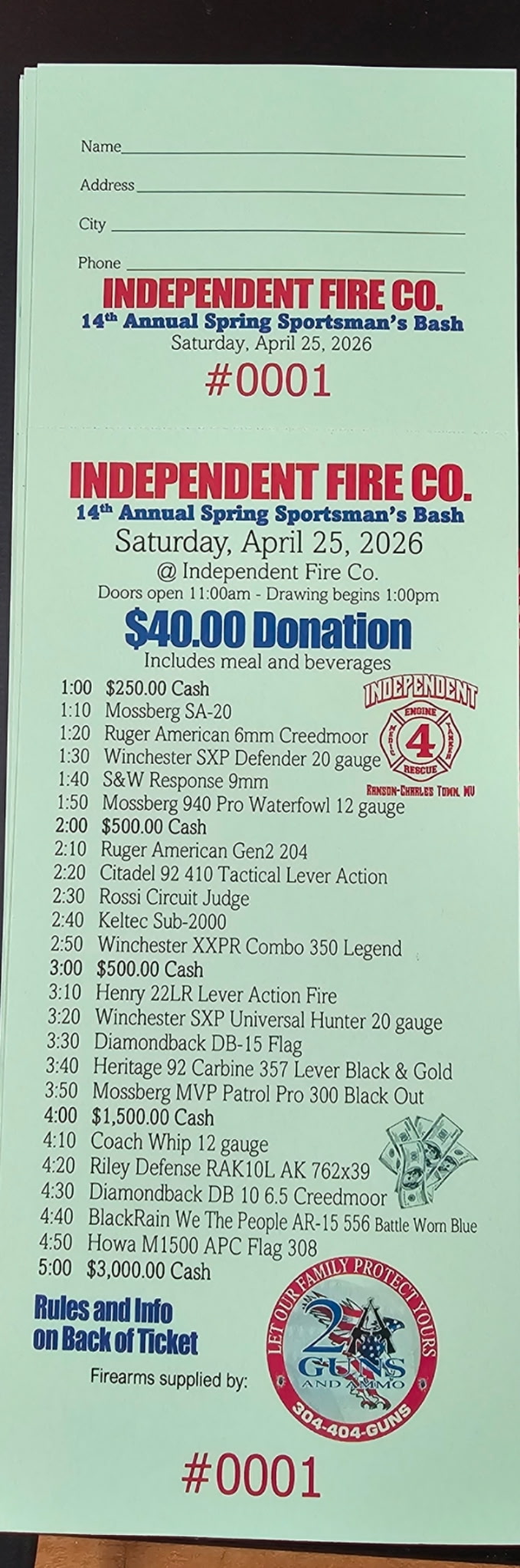 Come enjoy a night of fun, and get a new a gun! All while supporting the people that will show up when you need them most, our Volunteer Fire Department!